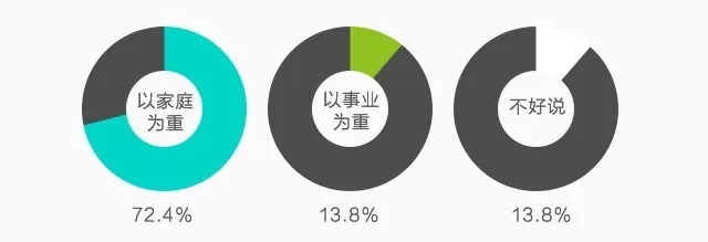 59.3%的太太認為工作對生活幸福的影響非常重要,但是當家庭和事業(yè)發(fā)生矛盾時,有72.4%的太太會選擇一家庭為重。