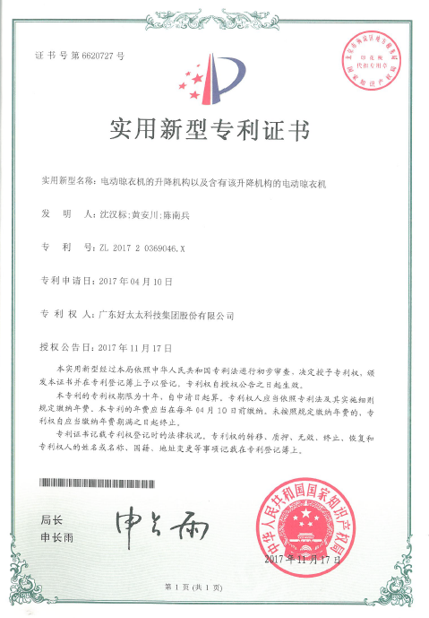 好太太GW-181 智尊系列不僅功能超強,承重力也超乎想象,除了能一次掛滿我帶回來的大量衣服,再加上全家人的衣服、被子一起晾曬也毫無壓力。原來機身藏著好太太自主研發的動力系統,有專利技術認證,產品品質有保障。